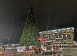 В Туле на площади Ленина продолжают собирать главную городскую елку. Напомним, в этом году высота конструкции составит 32 метра, диаметр в основании — 12,5 метра. Накануне на каркас праздничной ели уже «надели» 4,5 тыс. зеленых лап из искусственной хвои.